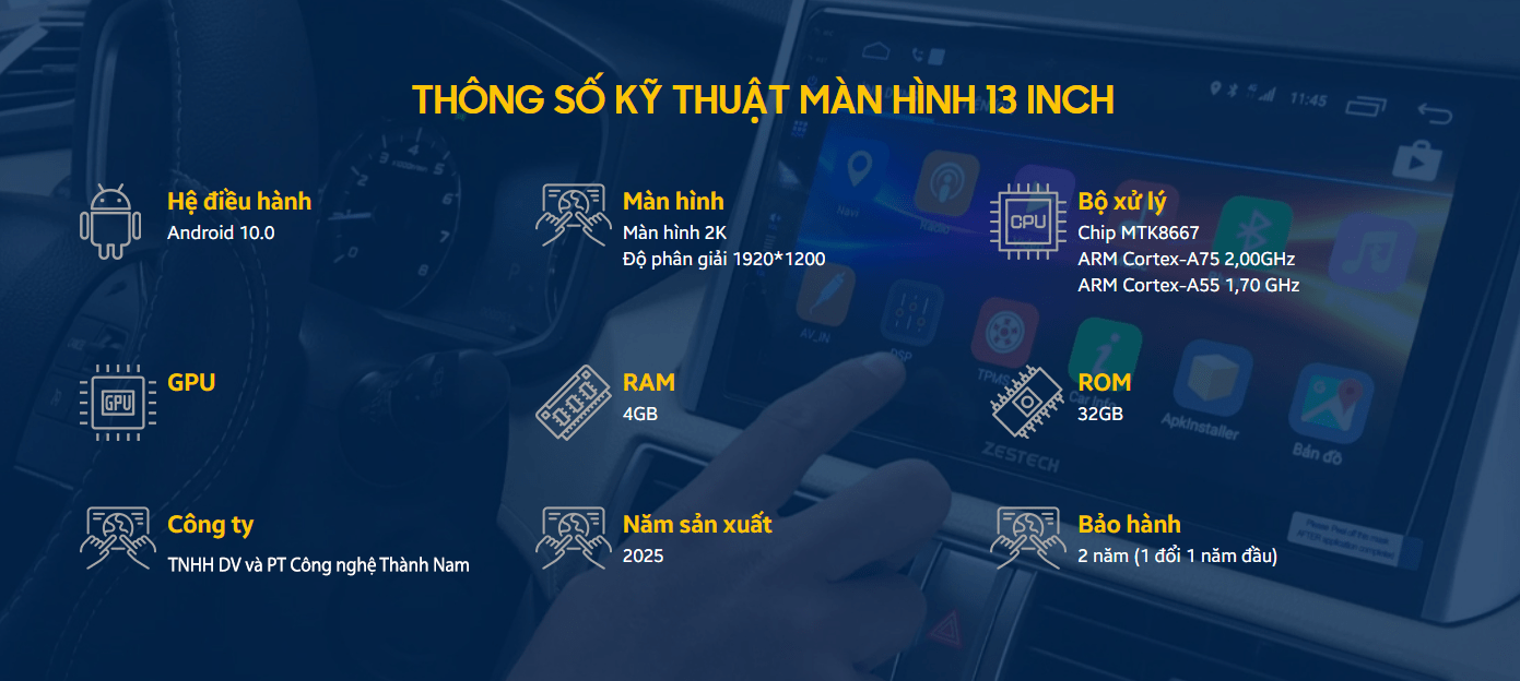 Thông số kỹ thuật của màn hình DVD Android Zestech 13 inch 2K