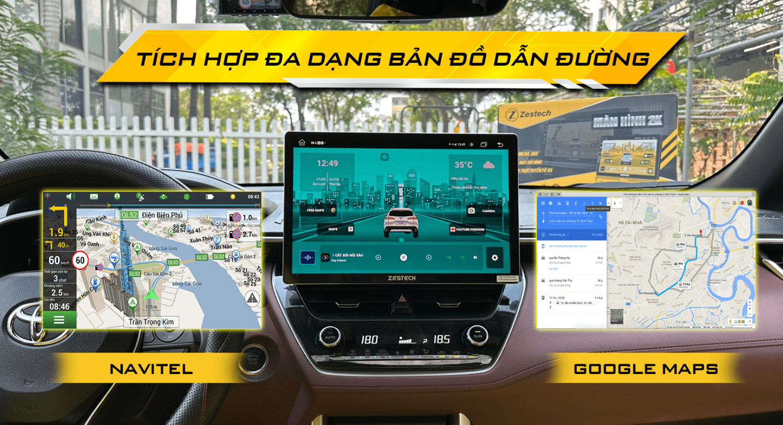 Zestech 13 inch sẽ mang tới cho người dùng trải nghiệm dẫn đường tiện lợi, chính xác thông qua các phần mềm dẫn đường hiện đại như: Google Maps, Navitel…