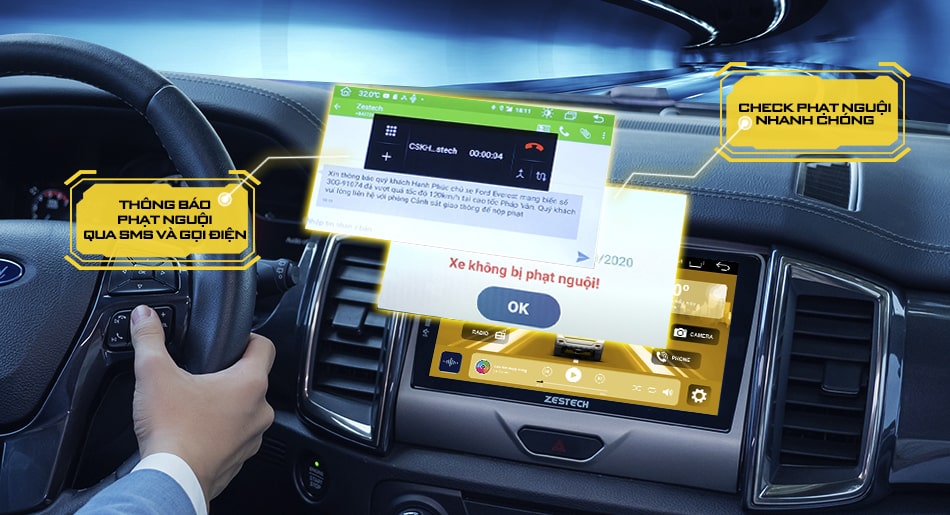 Màn Hình Android Zestech cũng sẽ gọi điện và nhắn tin tới chủ phương tiện, để nhắc bạn thanh toán tiền phạt nguội đúng hạn, tránh để bị tính thêm chi phí.